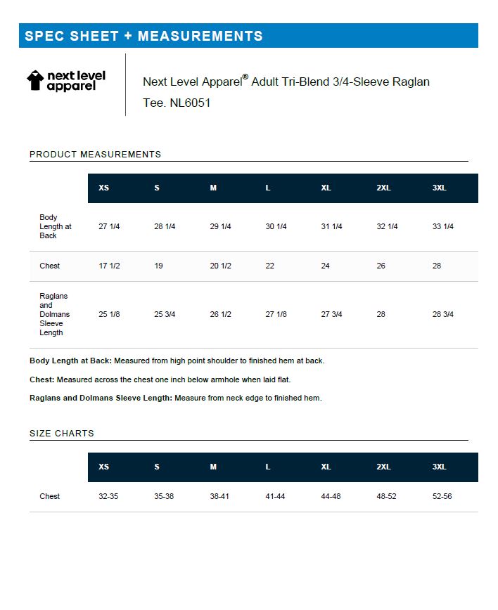 Next Level Apparel® Adult Tri-Blend 3/4-Sleeve Raglan Tee
