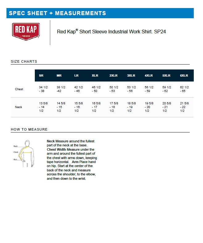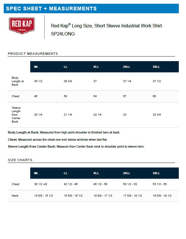 Red Kap® Long Size, Short Sleeve Industrial Work Shirt
