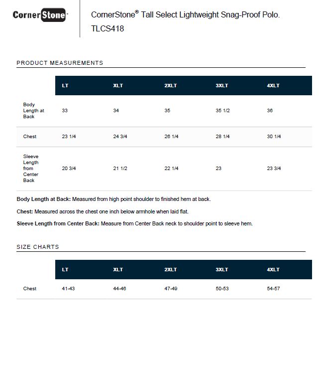 CornerStone® Tall Select Lightweight Snag-Proof Polo